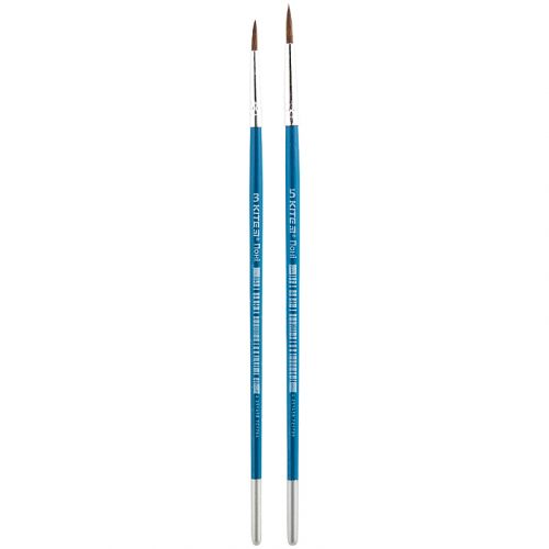 З набором пензлів Kite Classic K-347 дитина, напевно, буде з легкістю втілювати свої творчі задумки і фантазії на папері. Пензлі призначені для малювання водорозчинною фарбою – аквареллю, гуашшю або темперою. Виріб має безшовну ручку, зроблену з березової деревини, та обрамлену алюмінієвою обоймою. Щетина виготовлена з тонкого волоса поні, вона тримає первісну форму і гарно вбирає фарбу. Набір міститься в PVC пеналі і складається з 2 круглих пензлів різних розмірів – 3 і 5. Це допоможе дитині не тільки акуратно промальовувати деталі і контури, але і розфарбувати фон.