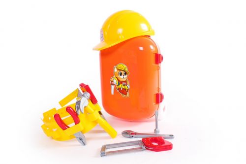 Комплектація: Валіза, каска, пояс для інструментів, пила, гайковий ключ, плоскогубці, молоток, лобзик, викрутка, насадка, куточок