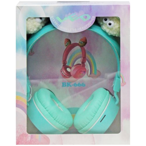 Бездротові навушники в оригінальному дизайні. Дуга навушників прикрашена кумедними мʼякими чудиками. Мʼякі подушечки на навушниках гарантують комфортне носіння та звукоізоляцію. Висота регулюється, підійдуть як дорослому, так і дитині. Компактно складаються. Навушники мають кнопки для регулювання гучності, зупинки музики та вимкнення навушників. Є розʼєм для картки памʼяті та мікрофон. Підійдуть до всіх моделей смартфонів та ноутбуків з підтримкою Bluetooth. Після повного заряджання працюють 4 години. У наборі є USB-кабель для заряджання.