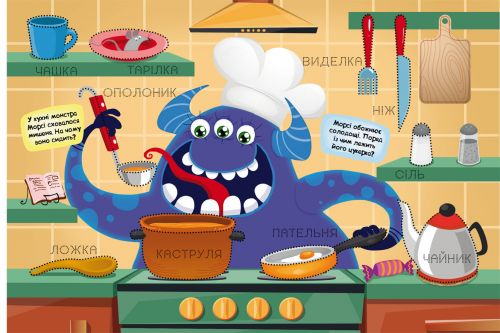 Цікава навчальна книжка. Головним персонажам – монстрикам потрібна допомога. Для цього потрібно виконати різні завдання. У книзі можна писати або малювати маркером, а потім прати написи. У книзі 6 листів із завданнями.