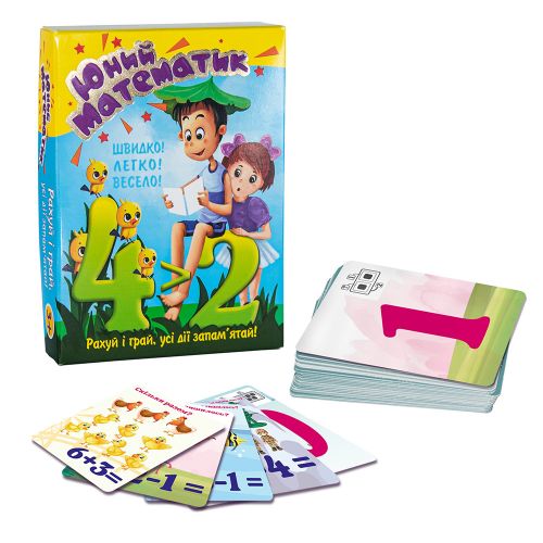 Навчальні картки “Юний математик”. Захоплюючі картки з математики допомагають вашому малюкові розвивати математичні здібності з дитинства. Комплект карток включає 6 наборів, які спрямовані на засвоєння дитиною різних математичних дій. У набір 48 карток.