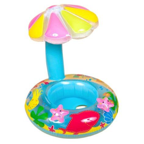 Надувне коло, яке ідеально підходить для використання на пляжі або в басейні. Оформлене в стилі морських мешканців та має захист від сонця, також має вбудоване сидіння, що може слугувати додатковим елементом безпеки. Виготовлене з ПВХ. Рекомендовано для дітей віком від 1 року – лише під наглядом дорослих.