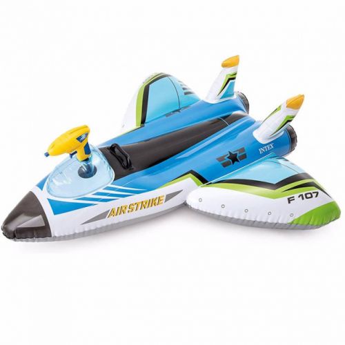 Яскравий і барвистий плотик в формі літака. У комплекті йде ще й водяний пістолет. Вода набирається безпосередньо з водойми, через маленький шланг, і можна відразу йти в напад. Спереду розташована ручка, щоб дотримуватися під час активного катання. Крила зручно розташовані в задній частині моделі, що дозволить ніжок занурюватися в воду. Розмір плотика – 1,17х1,17 м.