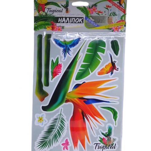 Набір декоративних наліпок на аркуші А3. Такі наліпки можна використовувати для дизайну стін, дверей, вікон або меблів. Поради з використання: 1.Визначте місце, яке хочете задекорувати; 2.Витріть насухо поверхню; 3.Дістаньте аркуш з пакету; 4. Відклейте зображення від підкладки та наклейте на підготовлену поверхню; 5.Складіть композицію з елементів у наборі відповідно до зразка на пакуванні або на власний розсуд.
