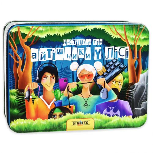 “Айтішники у Лісі” – захоплива настільна гра, яка миттєво переносить вас у вирій лісових пригод. Кожен ваш крок – це не просто гра, а справжня спільна подорож до перемоги. Лише разом із командою ви зможете подолати випробування лісу та подолати усі хитрощі, які він приховує. Комплектація: металева коробка, гральні картки – 99 шт., поля – 25 шт., планшетки персонажів – 4 шт., фішки – 8 шт., жетони – 40 шт., фігурка вогнища – 8 шт., фігурка води -14 шт., дрова – 8 шт., пісковий годинник – 1 шт., інструкція.