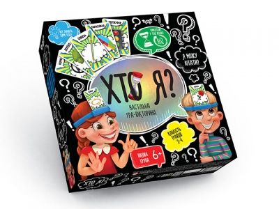 Суть гри полягає в тому, що кожному гравцеві одягається на голову обруч і встановлюється картка з малюнком, який відомий всім гравцям, крім Вас. Необхідно відгадати хто ж Ви. Можна використовувати навідні запитання з допоміжних карток з питаннями, суперники при цьому можуть відповідати на ваші питання тільки словом “так” або “ні”. На всі питання і спроби вгадати слово у Вас одна хвилина, яка вимірюється пісочного годинника. За кожне вгадати слово гравець отримує бонусну фішку. Мова: український.