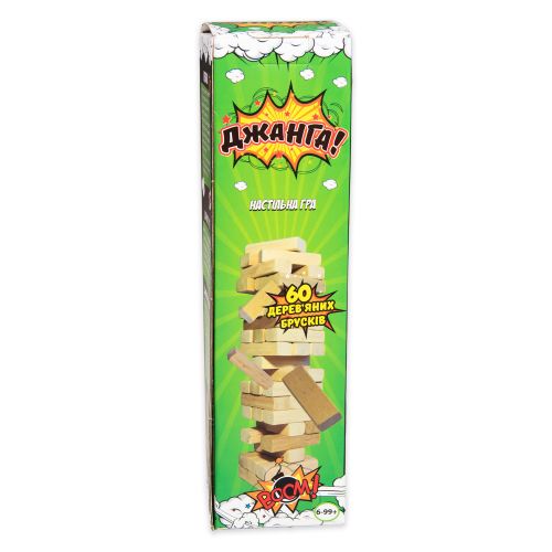 Представляємо вашій увазі нову компактну версію найпопулярнішої у світі розважальної гри “Дженга” (також відома як Jenga, Джанга, Башта, Vega). Розмір вежі у зібраному вигляді – 31 х 8.5 см. У цій грі збирається вежа з деревʼяних деталей. Бруски викладаються горизонтально, по чотири, чергуючись у двох напрямках – ряд вдоль, ряд упоперек. Потім гравці по черзі виймають бруски з нижніх рядів і укладають їх на вершину вежі, до того ж це потрібно робити однією рукою. Завдання учасників – не зашкодити конструкції. Перемагає ті, чиє останнє торкання башня витримала та вистояла.