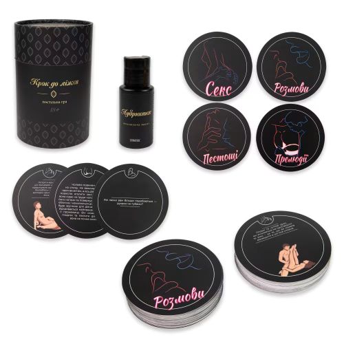 “Крок до ліжка” – це постільна карткова гра для дорослих. В наборі 4 різні види карток з питаннями і завданнями, що розпалять між вами полумʼя пристрасті. Починайте з розмов, переходьте до відвертих завдань, а згодом обирайте позу… Як бонус у коробці ви знайдете лубрикант, який забезпечить вам додатковий комфорт та задоволення під час інтимних ігор.