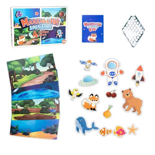 Допоможіть своєму малюкові урізноманітнити дозвілля та вивчити щось нове просто граючи. Для цьому у вашому розпорядженні цей дивовижний набір. Дитині потрібно буде розрізняти, до якого поля підходить кожна фігурка та приклеювати її на своє місце. Розкладіть всі поля, нехай дитина їх уважно роздивиться. Після цього запропонуйте дитині взяти фігурки та подумати, до якого поля кожна з них відноситься. Або дайте дитині можливість пофантазувати та придумати власні правила до гри.