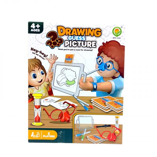 Малюй носом — це захоплива настільна гра, яка перетворить звичайний вечір на море сміху та веселощів. Гравець надягає спеціальні окуляри з тримачем для маркера, обирає картку із завданням і намагається намалювати малюнок… носом! Інші учасники повинні якнайшвидше відгадати, що саме зображено. Гра розвиває креативність та уяву, уважність та швидку реакцію, командний дух і вміння спілкуватися. Комплектація: 2 маски-окуляри (червоні та сині), 8 маркерів різних кольорів, 54 картки із завданнями, дошка для малювання, пісочний годинник, еластичні стрічки. Рекомендовано для дітей від 4 років. Кількість гравців від 2.