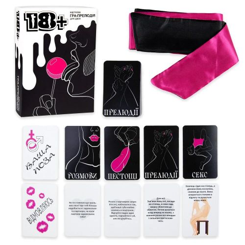 Ця гра розпалить вогонь та пристрасть у ваших серцях. В ній 4 колоди карт: розмови, пестощі, прелюдії, секс. Визначте, хто буде першим тягнути картки. Потім, по черзі беріть їх та відповідайте на питання або виконуйте дії. У кожній колоді є картки “Відмовляюсь”.Якщо витягнули її – відкладайте в сторону та тягніть наступну, а цією карткою скористайтеся, щоб відмовитися від завдання. І не забудьте пов’язку на очі в комплекті.