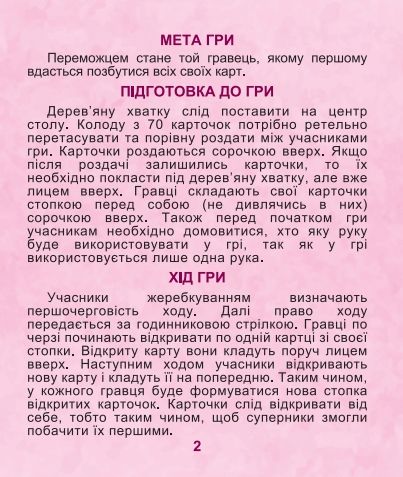 Комплектація: 70 карток, дерев’яна хватка, правила