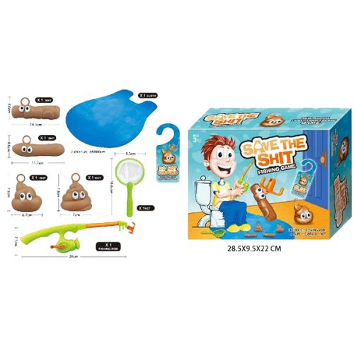 Весела дитяча гра “Save the shit”. У комплекті є: вудочка, 4 купки-какашки з очима, мережа. Головна мета гри, використовуючи всю свою спритність, зловити всі купки на гачок. Гра весела і точно сподобається діткам. Виконана з якісного та безпечного матеріалу, для дітей від 3-х років.
