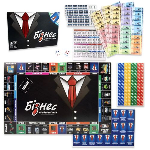 Настільна гра “Бізнес” дуже схожа на відому гру “Монополія”. Ця гра дозволить вам освіжити знання, а вашу дитину навчити основам економіки, навчити розвивати стратегічне мислення. та вміння дивитися на свої результати у перспективі. Також гра допоможе розвинути комунікаційні навички, оскільки під час гри вам доведеться домовлятися з іншими учасниками про купівлю та продаж власності. Кількість учасників – від 2-х до 4-х гравців. Для дітей віком від 6-ти років.