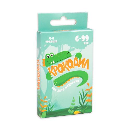 Карткова гра “Крокодил”- це цікава розважальна гра, в якій гравці пояснюють один одному слова з карток, не вимовляючи їх вголос. У набір входить 35 карток, на кожній із яких написано 4 слова. Гравці діляться на команди, і один із членів команди намагається пояснити слово з картки за допомогою жестів, міміки та інших невербальних засобів. Мета гри – вгадати якнайбільше слів за відведений час.