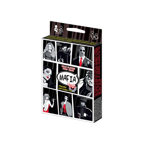 Карткова гра “Мафія”. На початку партії ведучому слід дати гравцям наосліп вибрати їх ролі, так щоб інші учасники не знали, хто яку витягнув роль. Місто засинає, на Детектива ляже відповідальність знешкодити всіх членів бандитського угруповання. Завданням же Мафії буде вбити всіх мирних жителів і залишитися в місті в більшості. 28 ігрових карток.