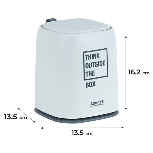 Настільний контейнер для сміття. Допомагає підтримувати робочий простір організованим та чистим. Призначений для дрібного канцелярського сміття. Він легко очищується, має компактний розмір 16,5*13.5*13,5 см та стильний дизайн. Виготовлений з високоякісних матеріалів (первинного пластику), що забезпечує довговічність і надійність використання. Ідеальне рішення для організованого та естетичного робочого середовища.