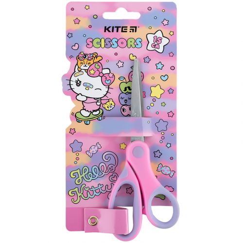 Ножиці с м’якими прогумованими вставками на ручках на кольоровій картонній підкладці. Прогумовані овальні ручки зроблені з первинного пластику, вони термостійкий та стійкі до механічних пошкоджень. Форма ручок запобігають ковзанню в руках та зручна для багатогодинного використання. Леза зроблені з нержавіючої сталі, вони досить гострі для розрізання паперу, картону, тканини та ниток. Навіть при легкому натисканні дитина відріже щільний картон. Кінчики дитячих ножиць мають заокруглену форму з метою безпеки. Довжина виробу в 15 см дозволяє з легкістю зберігати ножиці у пеналі або у невеликій кишені. Рекомендовано дітям дошкільного та шкільного віку.