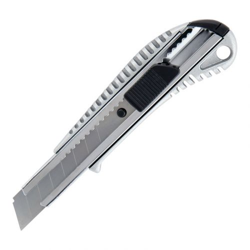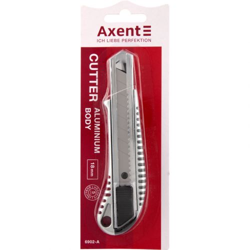 Канцелярський ніж Axent – це надійний, безпечний і довговічний інструмент для використання в офісі, на складі, на виробництві або в побуті завдяки поєднанню якості матеріалу, продуманості деталей і надійності механізму. Сталеве багатосекційне лезо забезпечує найвищу функціональність, стійкість, гостроту. Міцний металевий корпус з алюмінію стійкий навіть до інтенсивних навантажень. Металеві направляючі та механізм фіксації Twist-Lock (коліщатком) забезпечують ступеневу подачу леза, безпечну роботу, виключають ризик раптового випадання або провалювання леза. Кришечка з пазом дозволяє просто і безпечно обламати затуплену частину леза уздовж лінії насічки і продовжувати користуватися гострим лезом. Ергономічний дизайн корпусу адаптований під форму долоні. У корпусі є отвір для шнурка. Блістерна упаковка.