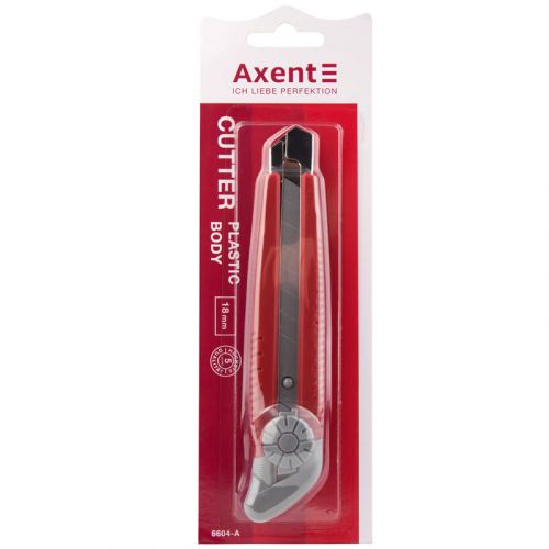 Канцелярський ніж Axent – це надійний, безпечний і довговічний інструмент для використання в офісі, на складі, на виробництві або в побуті завдяки поєднанню якості матеріалу, продуманості деталей і надійності механізму. Сталеве багатосекційне лезо забезпечує найвищу функціональність, стійкість, гостроту. Міцний пластиковий корпус стійкий до навантажень, не розбивається при падінні. Металеві направляючі та механізм фіксації Twist-Lock (коліщатком) забезпечують ступеневу подачу леза, безпечну роботу, виключають ризик раптового випадання або провалювання леза. Кришечка з пазом дозволяє просто і безпечно обламати затуплену частину леза уздовж лінії насічки і продовжувати користуватися гострим лезом. Ергономічний дизайн корпусу адаптований під форму долоні. У корпусі є отвір для шнурка. Блістерна упаковка.