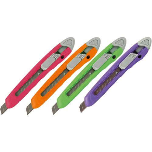 Канцелярський ніж із міцним пластиковим корпусом. Обовʼязково знадобиться у школі, вдома чи роботі. Підійде для різання картону. папери та роздруківки посилок. Ширина леза – 1 см. Фіксатор надійно закріплює лезо в потрібному положенні та запобігає зісковзанню. Довжина ножа – 13 см. Різні кольори в асортименті.