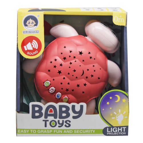Милий пластиковий нічничок у вигляді черепашки із проектором зіркового неба. Нічник має 4 кнопки – включення/вимкнення, колискова, звуки природи та зміна рівня гучності. Працює від 3-х батарейок АА (немає в комплекті). Розмір нічника – 16 х 15 х 5 см.
