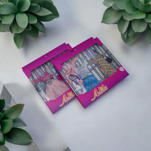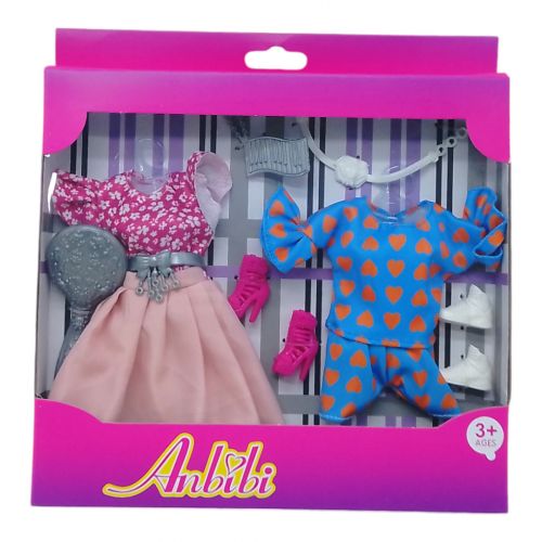 З таким чудовим набором малюк зможе урізноманітнити гардероб своєї ляльки. До набору входять 2 комплекти одягу, 2 пари взуття та додаткові аксесуари (гребінець або прикраси або сумочка). Одяг та взуття розраховані на ляльку стандартного розміру (приблизно 28 см.). Виготовлено з якісних та безпечних матеріалів (текстиль, пластик).