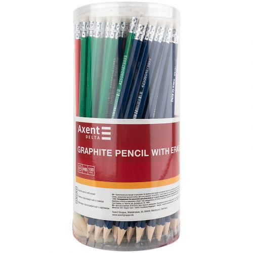 Олівець графітний Delta by Axent з гумкою підходить для письма, креслення та малювання. Заточений. Міцний шестигранний корпус з якісної деревини захищає грифель від ударів і забезпечує легкість заточування. Твердість HB. Корпус покритий кольоровим лаком. Довжина 189 мм, діаметр 7 мм.