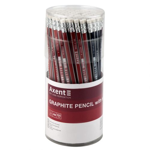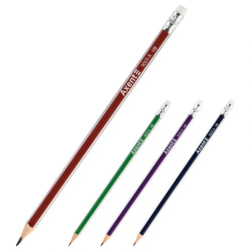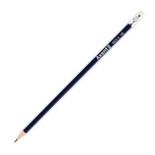 Олівець графітний Axent 9003-A з гумкою підходить для письма, креслення та малювання. Заточений, має ергономічний тригранний дизайн, зручно лежить в руці. Висока якість деревини забезпечує міцність, захист грифеля від ударів і легкість заточування. Твердість HB, гладке матове покриття зі срібними смугами на ребрах. Довжина 189 мм, діаметр 7 мм.