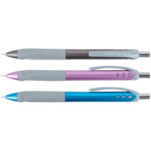 Олівець механічний Ergo-Grip. Кольоровий пластиковий корпус. Прогумована область захоплення. Твердість НВ. Вбудований ластик. Діаметр стержня 0,5 мм.