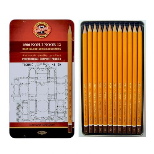 Олівці графітні Technic для технічних робіт, твердість НВ-10Н. Набір – 12 графітних олівців 1500. Металева упаковка.