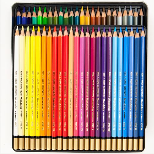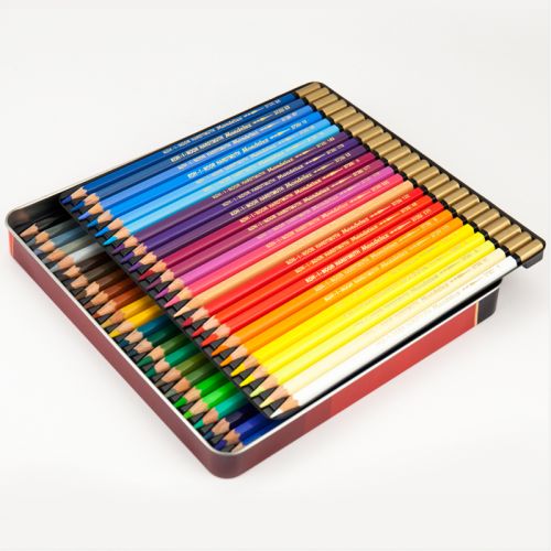 Професійні художні акварельні олівці у подарунковій упаковці. При розмитті малюнка водою – ефект акварелі! Потовщений м’який грифель, діаметр 3.8 мм. Деревина – кедр. Покриття – кольоровий лак. Тиснення золотом, шестигранна форма корпусу.