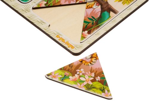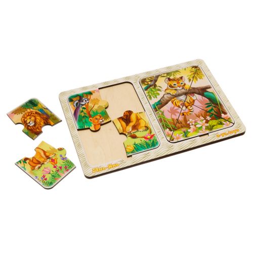 Пазли – вкладиші добре розвивають дрібну моторику рук, логічне мислення та візуальне сприйняття дитини. Головна мета – підібрати відповідні елементи за формою та розмістити на рамці-основі, щоб вийшла готова картинка. У рамці розміщено 2 картинки по 4 елементи. Розмір основи 23х16 см.
