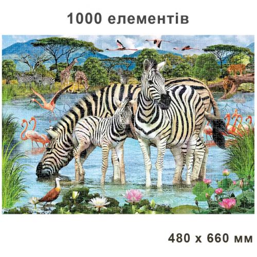 Пазли на 1000 елементів – чудовий вибір для сімейного дозвілля або для індивідуального відпочинку. З їхньою допомогою можна не лише цікаво провести час, а й розвинути увагу, терпіння та логічне мислення. Зібране зображення розміром 66 х 48 см стане стильною окрасою інтерʼєру або доповненням до вашої колекції пазлів.