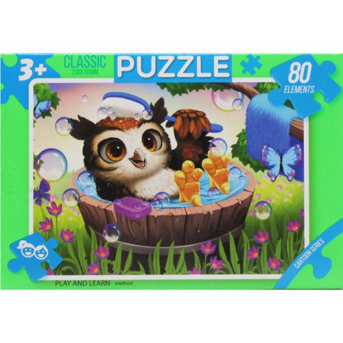 Яскраві барвисті пазли на 80 елементів, з зображенням казкових персонажів. Розмір готової картинки: 23 х 16,5 см.