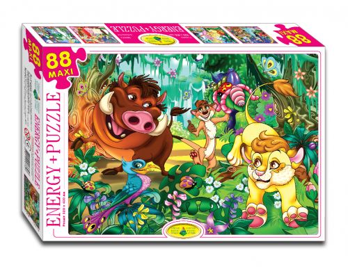Яскраві барвисті пазли на 88 деталей. Розмір готової картинки: 32 х 40 см. Розвивають логічне мислення, дрібну моторику рук, посидючість.