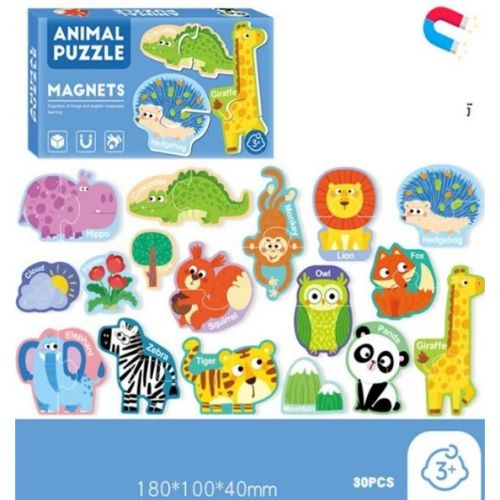 Барвисті пазли з тваринками. Така іграшка є веселою можливістю поглянути на те, на що здатні магніти та як гарно деталі тримаються між собою. Ігри з пазлами чудово розвиватимуть дрібну моторику рук, увагу, та допоможуть дитині вивчити тварин. Виготовлено з якісних та безпечних матеріалів. Рекомендовано для дітей старше 3 років.
