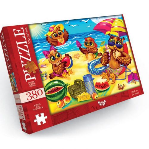 Яскраві барвисті пазли на 380 елементів. Розмір готового зображення: 47,5 х 34 см. Розвивають логічне мислення, дрібну моторику рук, посидючість.