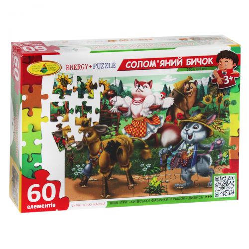 Яскраві барвисті пазли на 60 елементів, з зображеннями казкових персонажів. Розмір готової картинки: 33 x 23,5 см.