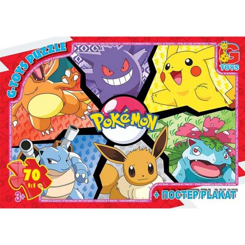 Пазл складається зі 70 елементів, які після збирання формують цілісну картинку з популярними персонажами серії “Покемони”. Деталі зручно поєднуються між собою, що робить процес складання комфортним для дитини.