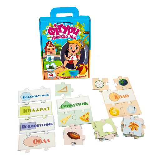 Розвиваючі пазли для малюків. Гра познайомить дитину з геометричними фігурами, які нас оточують. Так само, поліпшить дрібну моторику, логічне мислення уважність і посидючість. Тематичні блоки: овал, коло, трикутник, квадрат, багатокутник, прямокутник.
