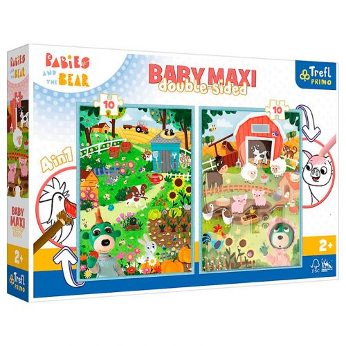 Набір з 2 барвистих пазлів по 10 елементів. Пазли та розмальовка із зображеннями тварин, які живуть на фермі. Розмір готових картинок: 30х40 см. Розвивають логічне мислення, дрібну моторику рук, посидючість.