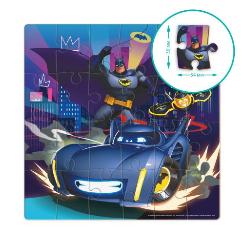 Яскраві барвисті пазли на 24 деталей. Пазли з героями світу “DC”. Розмір готової картинки: 22 х 22 см. Розвивають логічне мислення, дрібну моторику рук, посидючість. Складання пазлів це відмінний спосіб провести час із сімʼєю чи друзями. Для дітей віком від 3-х років.