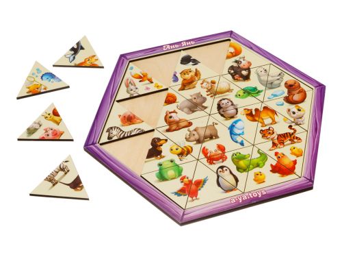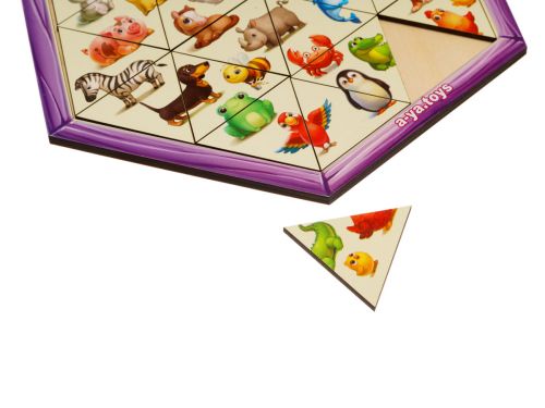 Пазл-головоломка з деталями у вигляді трикутників, а сама основа (рамка) – це шестигранник. Потрібно зібрати пазл з усіх трикутників так, щоб вийшла картинка. Розмір рамки – 26,5х23 см.