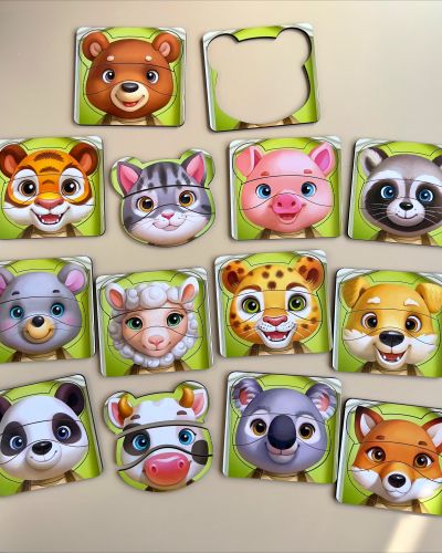 Пазл “Збери тваринок” – у наборі 39 деталей та 13 карток з тваринами. Завдання малюка: зібрати тваринку, як на малюнку. Також за допомогою елементів набору можна створити власних тварин.