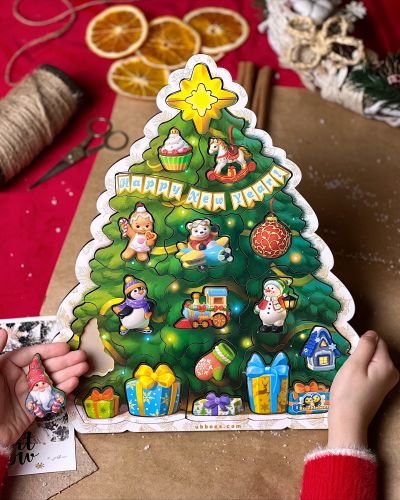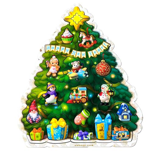 Пазл з підказкою “Новорічна ялинка”. Дитині потрібно не лише вставити деталі в рамки, а й правильно розкласти самі рамки у вигляді ялинки. Гра для розвитку зорової пам’яті, дрібної моторики, логічного мислення. Дитина дізнається більше про свято Нового Року, його символи та традиції. В комплекті 33 деталі. Виготовлено з якісних та безпечних матеріалів.
