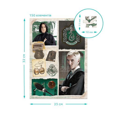Пазл на 150 елементів для дітей віком від 8 років і старше. На малюнку зображені герої фільмів про Гаррі Поттера. Цей яскравий і барвистий пазл є цікавим і корисним заняттям, що сприяє розвитку логічного мислення, уваги і терпіння у дітей. Складання пазла допоможе їм розвивати моторику, візуальне сприйняття та покращувати навички вирішення завдань. Розмір готової картинки – 32 х 23 см.