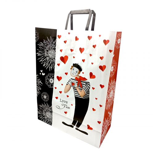 Яскравий подарунковий пакунок буде хорошим доповненням до основного подарунку та створить незабутній настрій свята. Пакет паперовий, розміром: 32х15х42 см. Прикрашений красивим принтом. Має зручні та досить міцні ручки. Зробіть свій подарунок неперевершеним із цим чудовим пакетом.