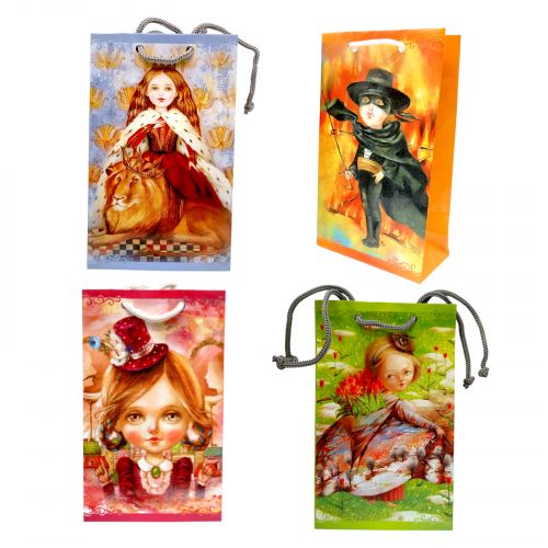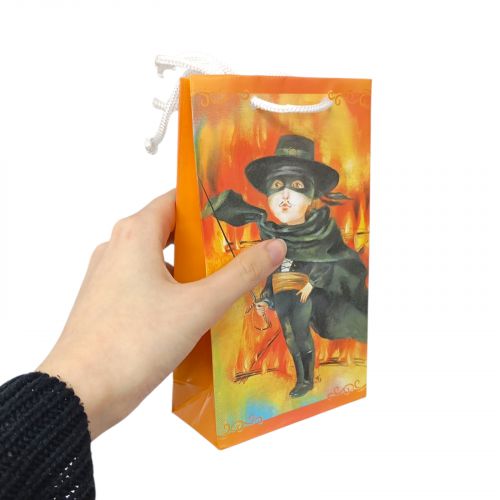 Яскравий подарунковий пакунок буде хорошим доповненням до основного подарунку та створить незабутній настрій свята. Пакет картонний, середнього розміру: 18х5х11 см. Прикрашений красивим принтом. Має зручні та досить міцні ручки-стрічки. Зробіть свій подарунок неперевершеним із цим чудовим пакетом.