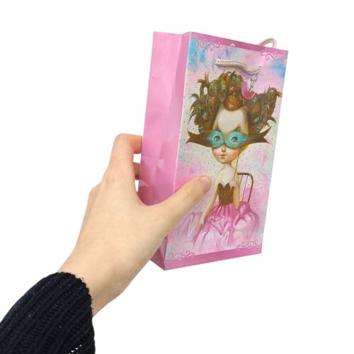Яскравий подарунковий пакунок буде хорошим доповненням до основного подарунку та створить незабутній настрій свята. Пакет картонний, середнього розміру: 18х5х11 см. Прикрашений красивим принтом. Має зручні та досить міцні ручки-стрічки. Зробіть свій подарунок неперевершеним із цим чудовим пакетом.